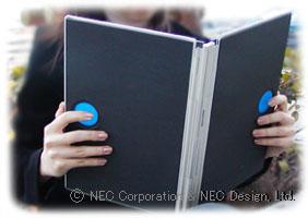 We use our favorite notebook on the desk and in a mobile environment. Then, why do we have to have more than one PC? Using short-range wireless connection and COG technology, a laptop PC will have more flexibility just like paper. This mobile PC has a multiple-layer hinge structure that allows users to open it as one large display on the desk and to use it as a tablet PC and a book browser for mobile use. It adapts to users' environments and situations.