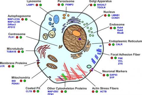 CellPainterTM Organelle Markers are GFP- and RFP-tagged TrueORF cDNA clones encoding organelle-specific or structure-specific proteins. The proteins are fused with a fluorescent protein and allow direct visualization of the organelles or structures without manipulation. (View photo gallery)